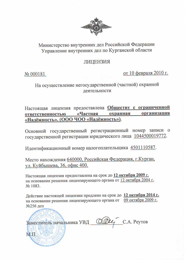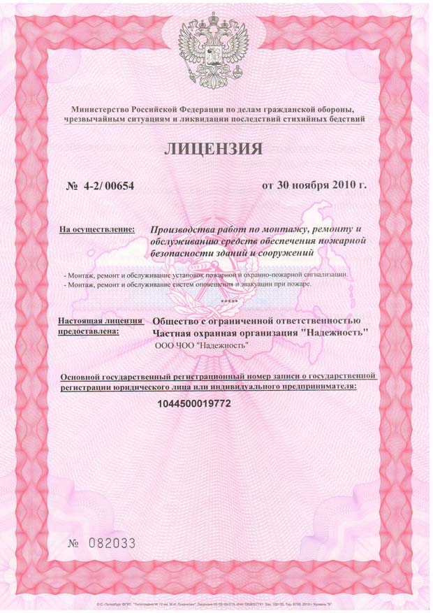 Лицензия № 4-2/00654 от 30.11.2010 г.
